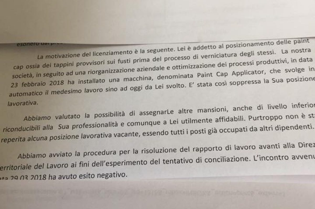 38 lettera di auto licenziamento
